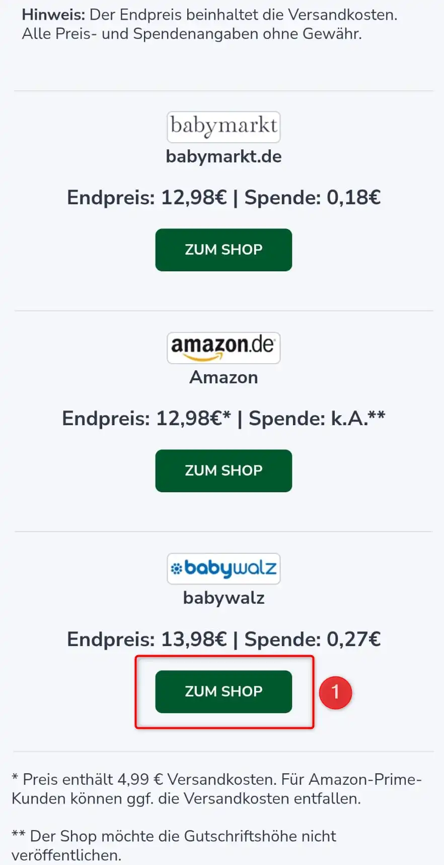 Ihr könnt Bildungsspender aber auch gleich HIER – ohne Erweiterung und App – ausprobieren: Auf gute Einkäufe.